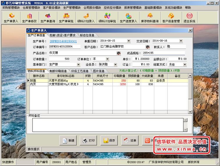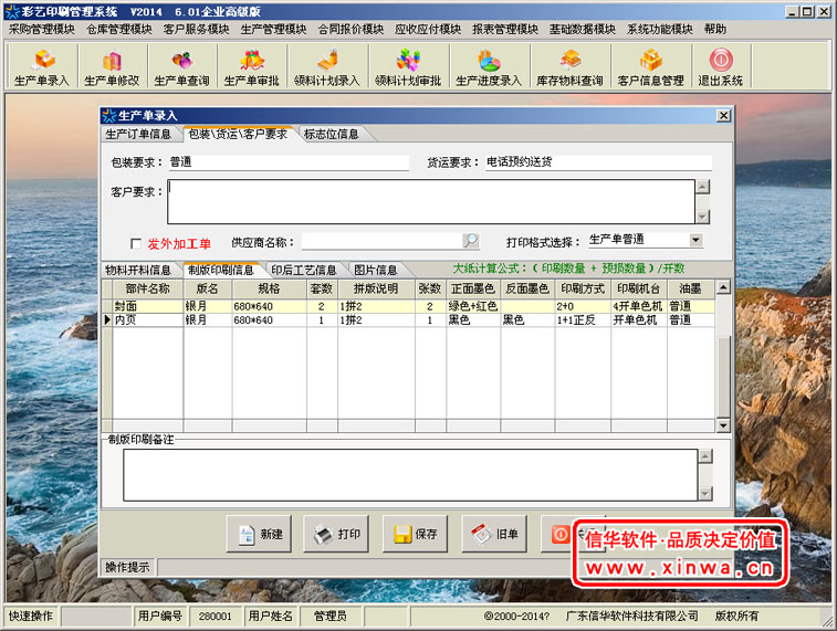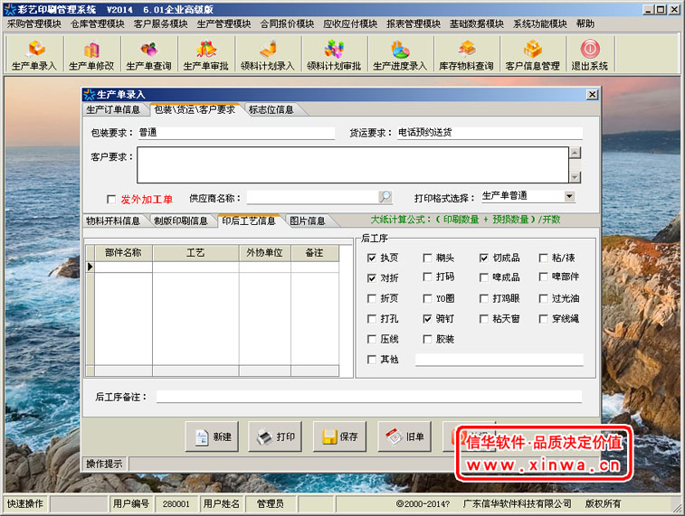 ,可錄入管理報(bào)價(jià)單及印刷合同。